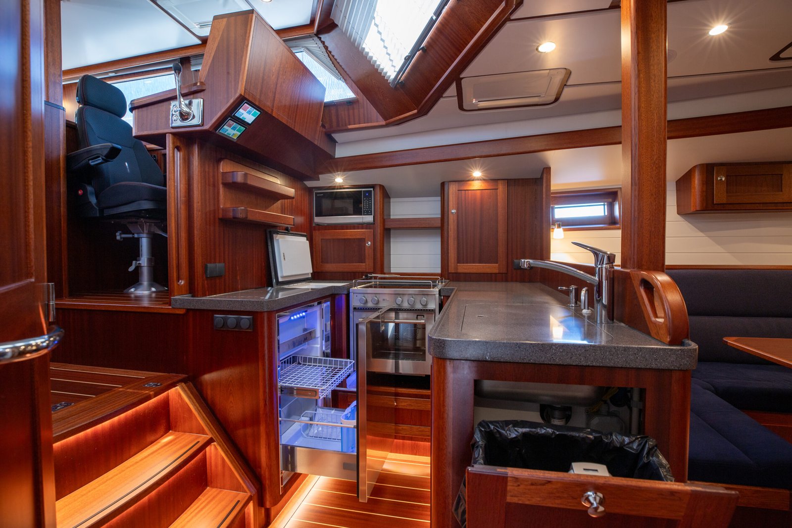 Deze Enksail Orion 49 is in opdracht gebouwd van de Canadezen Paul en Sheryl Shard, bekend als de hosts van het TV-programma en YouTube-kanaal “Distant Shores”. Het zeiljacht is te volgen via YouTube, Instagram en Facebook. Een weekje meezeilen? Dat is mogelijk. Paul en Sheryl organiseren regelmatig Sail Away Weeks.