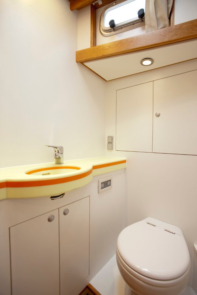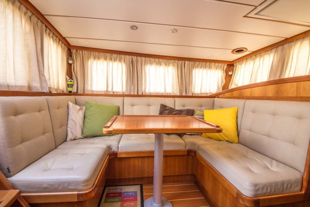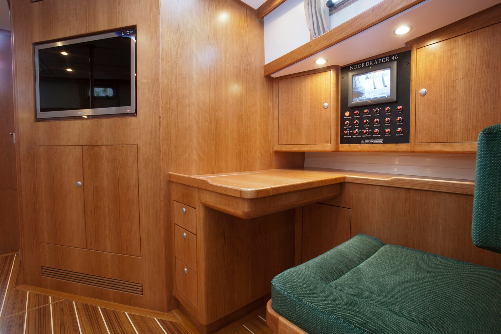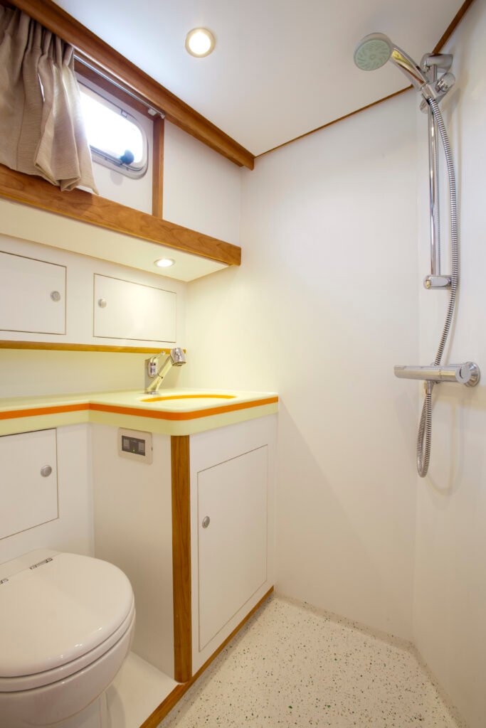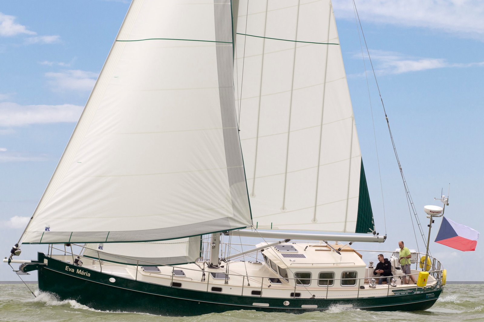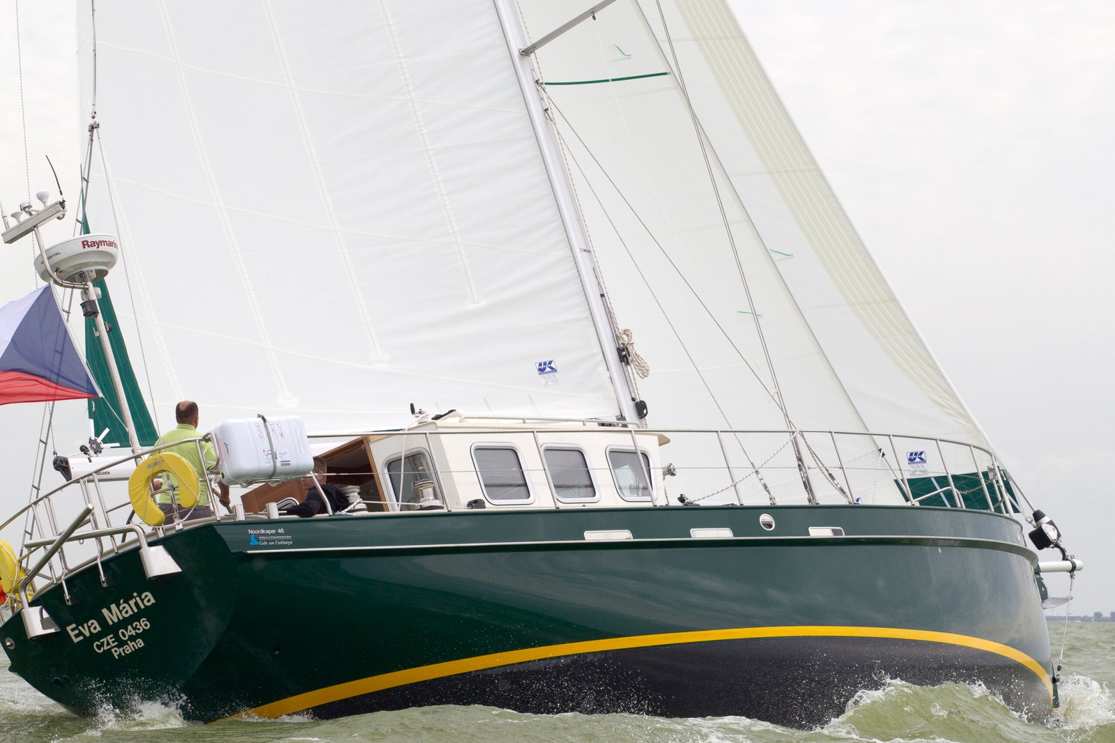 Deze Enksail Noordkaper 46 is afgeleverd in 2011 en gebouwd in opdracht van een Tsjechisch echtpaar. Er is gekozen voor een indeling met twee hutten in de voorpiek. Inmiddels heeft de Eva Maria een nieuwe eigenaar en is het interieur aangepast. De twee hutten voorzin zijn omgebouwd tot een grote eigenaarshut.
